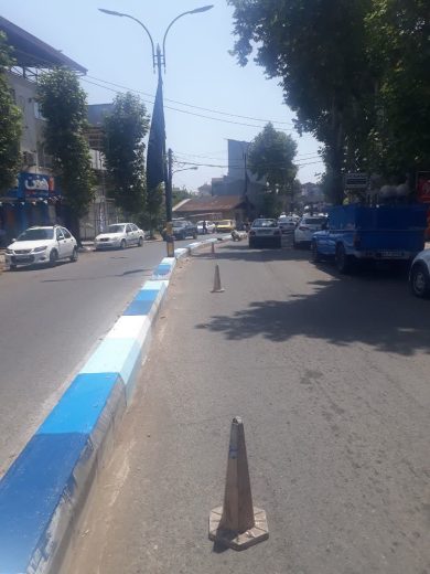 عملیات رنگ آمیزی جداول بلوار و مسیر تعریض خیابان توسط شهرداری تکمیل و به انجام رسید.